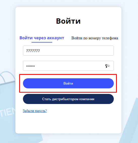Нажать кнопку "Войти"