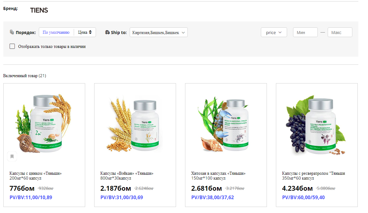Продукцию можно добавить в корзину только если он есть в наличии на складе