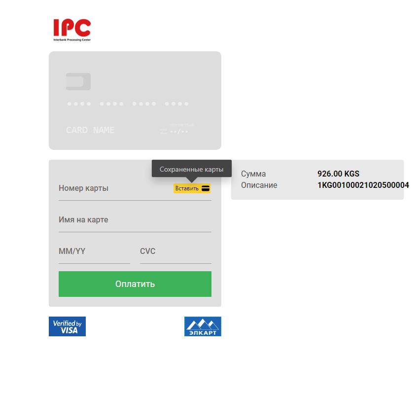 Оплата заказа. Оплатить заказ можно любой банковской картой.